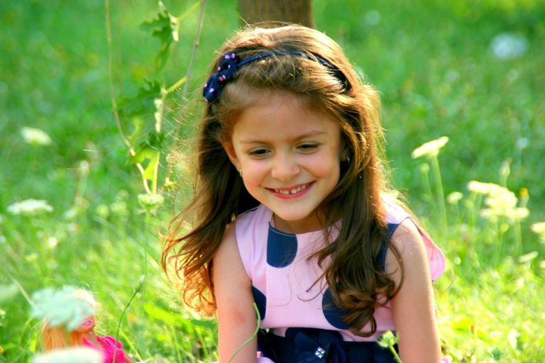 Keywords: girl smile flowers plain green beauty joy