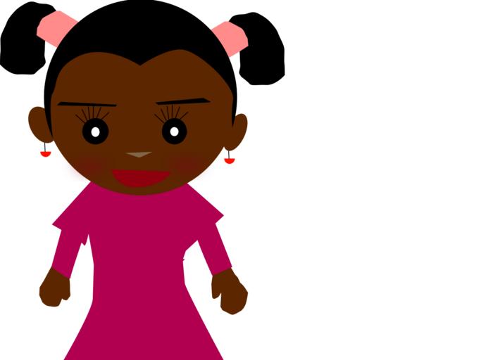 Keywords: girl smile shadow stand black colored pink hair pigtails ear-rings female dress loom approach