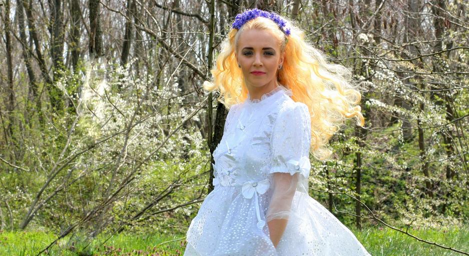 Keywords: girl spring flowers white blue eyes blonde wreath beauty trees