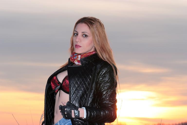 Keywords: girl sunset seductive portrait beauty leather