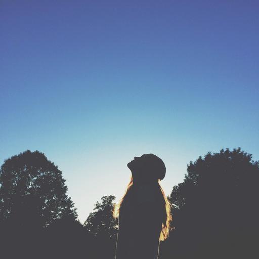 Keywords: girl sunset shadow silhouette long hair blue sky trees