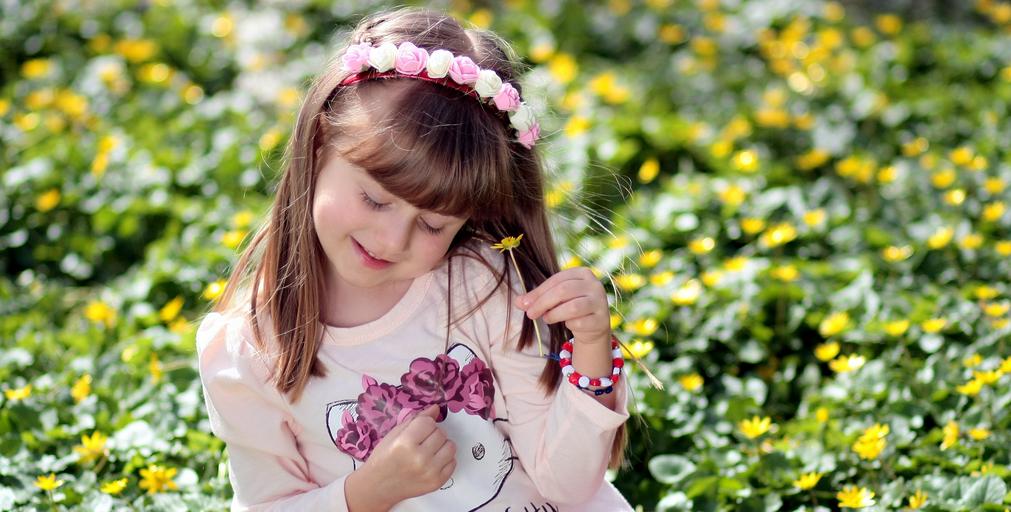 Keywords: girl toddler long hair portrait spring beauty innocence flower
