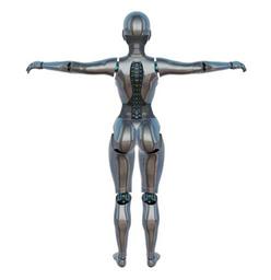 Keywords: girl woman back robot cyborg android robotics future artificial intelligence blue silver isolated sci-fi science fiction