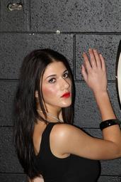 Keywords: girl woman face mystery model pose look hand wall standing