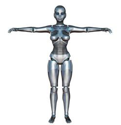 Keywords: girl woman front robot cyborg android robotics future artificial intelligence blue silver isolated sci-fi science fiction