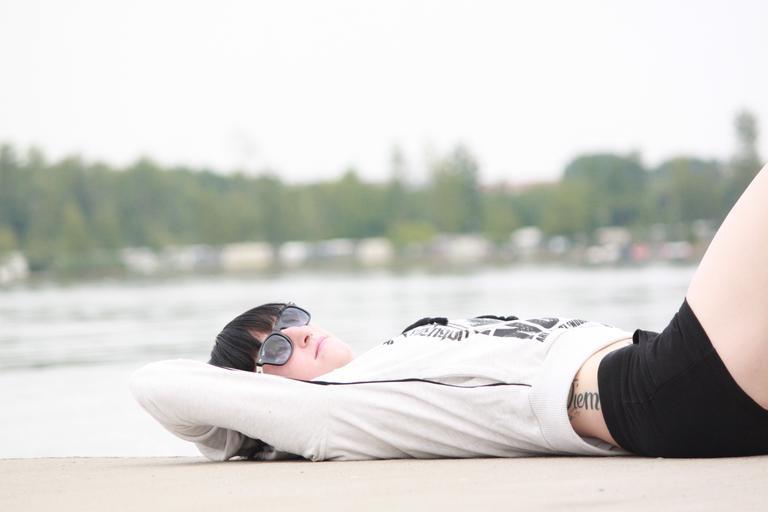 Keywords: girl woman person concerns relax chill out relaxation dreams recover sleep rest tattooed face glasses