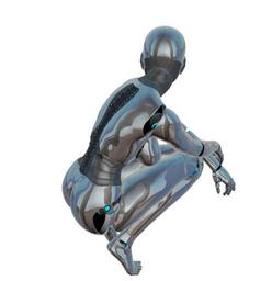 Keywords: girl woman posing back robot cyborg android robotics future artificial intelligence blue silver isolated sci-fi science fiction