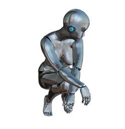 Keywords: girl woman posing front robot cyborg android robotics future artificial intelligence blue silver isolated sci-fi science fiction