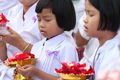 MAKE A MEME View Large Image girls buddhists monk rose petals tradition ceremony people child thailand asia bangkok pray wat phra dhammakaya temple dhammakaya pagoda more than million budhas gold buddhism