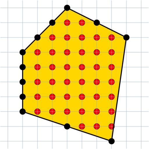 Keywords: Gitterpolygon.svg grid polygon illustraring Pick's theorem Gitterpolygon zur Veranschaulichung des Satzes von Pick Polygone avec une grille destiné à illustrer le théorème de Pick own RokerHRO 2005-03-03 Gitterpolygon-2 svg Pick's theorem