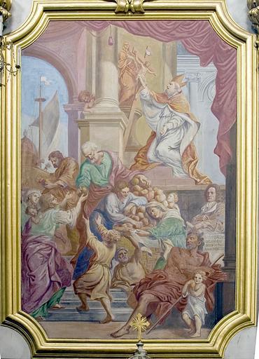 | Keywords: Giulio Quaglio the Younger - Sv. Miklavž reši meščane Mire pred lakoto.jpg Artwork creator Giulio Quaglio II 1704 oil canvas Ljubljana Cathedral http //barok zrc-sazu si/Spomeniki/Stolnica aspx <gallery>File Giulio Quaglio II self-portrait jpg Fragment with self-portrait</gallery> non-free frame PD-art-100 Frescos of Ljubljana Cathedral by Giulio Quaglio the Younger 1704 paintings in Slovenia 18th-century religious paintings in Slovenia Paintings of Saint Nicholas in Slovenia 18th-century oil on canvas paintings in Slovenia Paintings in Ljubljana Cathedral |