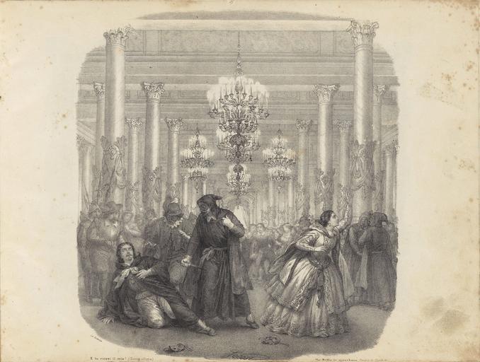Keywords: Giuseppe Verdi, Un Ballo in maschera, Vocal score frontispiece.jpg original Frontispiece to the 1860 vocal score of Giuseppe Verdi's Un Ballo in maschera published by Ricordi showing the final scene Et tu ricevi il mio 1860 http //pds lib harvard edu/pds/view/21439302 printThumbnails no action jp2resize op j imagesize 2400 pvHeight 1200 pvWidth 1200 n 5 rotation 0 bbx1 0 bby1 0 bbx2 130 bby2 99 jp2Res 0 5 pres 25 jp2x -1 jp2y -1 maximum x 9 maximum y 11 Harvard Library from Verdi Giuseppe Un ballo in maschera melodramma tragico in tre atti / musica di G Verdi ; riduzione per canto e pianoforte di Luigi ed Alessandro Truzzi Milan Ricordi 1860 Roberto Focosi 1806-1862 Lit Corbetta presumably lithographed by Corbetta - this appears to be Francesco Corbetta 1815- who was a frequent collaborator with Focosi Although Corbetta's date of death is uncertain being born in 1815 and given List of the verified oldest men which he does not appear on this work can safely be considered PD-Old-70 other versions File Giuseppe Verdi Un Ballo in maschera Vocal score frontispiece - restoration jpg - Restoration JPEG File Giuseppe Verdi Un Ballo in maschera Vocal score frontispiece - restoration png - Restoration PNG File Giuseppe Verdi Un Ballo in maschera Vocal score frontispiece jpg - Original Uploads by Chris Woodrich Uploaded with UploadWizard Un ballo in maschera