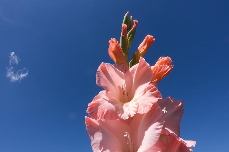 Keywords: gladiolus sword flower schwertliliengewaechs pink tender green blue bloom nature flora summer field