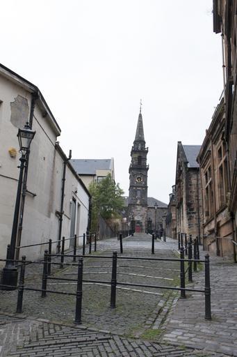 Keywords: outdoor street church spire cobblestone vqegglasgow:scene=scene07 vqegglasgow:device=eos70d road architecture Paisley Paisley