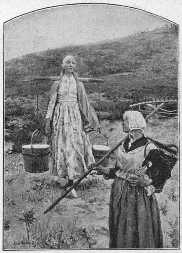 Keywords: Glaspalast München 1891 076b.jpg 076a 077 Creator Gari Melchers In den Dünen Dans le dunes Glaspalast München 1891 Gari Melchers Milkmaids in art Windmills in art People under yoke in art Carrying women in art Buckets in art