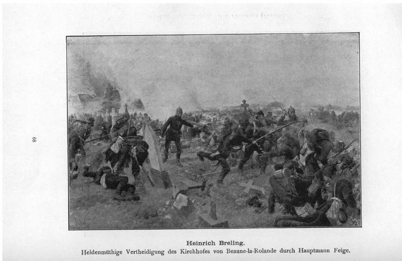 | Keywords: Glaspalast München 1896 070.jpg 069 071 Heinrich Breling Heldenmüthige Vertheidigung des Kirchhofes von Beaune-la-Rolande durch Hauptmann Feige Glaspalast München 1896 Heinrich Breling Beaune-la-Rolande Cemeteries in art Battles of the Franco-Prussian War Paintings of battles |