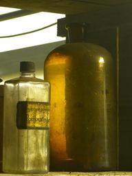 Keywords: glass bottle old pharmacy bottle transparent decoration brown back light