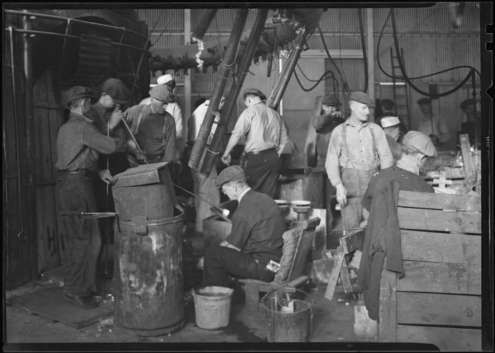 | Keywords: nara:arcid=518643 u.s. national archives usnationalarchives lewis hine lewishine 1937 millville new jersey newjersey the great depression thegreatdepression blackandwhite monochrome black and white Original Caption: Millville, New Jersey - Glass bottles. T.C. Wheaton Co. Men working in shop, March 1937 U.S. National Archives’ Local Identifier: 69-RP-415A Photographer: Hine, Lewis Subjects: The New Deal Tennessee Valley Authority Works Progress Administration Work Portraits The Great Depression Persistent URL: research.archives.gov/description/518643 Repository: Still Picture Records Section, Special Media Archives Services Division (NWCS-S), National Archives at College Park, 8601 Adelphi Road, College Park, MD, 20740-6001. For information about ordering reproductions of photographs held by the Still Picture Unit, visit: www.archives.gov/research/order/still-pictures.html Reproductions may be ordered via an independent vendor. NARA maintains a list of vendors at www.archives.gov/research/order/vendors-photos-maps-dc.html Access Restrictions: Unrestricted Use Restrictions: Unrestricted Original Caption: Millville, New Jersey - Glass bottles. T.C. Wheaton Co. Men working in shop, March 1937 U.S. National Archives’ Local Identifier: 69-RP-415A Photographer: Hine, Lewis Subjects: The New Deal Tennessee Valley Authority Works Progress Administration Work Portraits The Great Depression Persistent URL: research.archives.gov/description/518643 Repository: Still Picture Records Section, Special Media Archives Services Division (NWCS-S), National Archives at College Park, 8601 Adelphi Road, College Park, MD, 20740-6001. For information about ordering reproductions of photographs held by the Still Picture Unit, visit: www.archives.gov/research/order/still-pictures.html Reproductions may be ordered via an independent vendor. NARA maintains a list of vendors at www.archives.gov/research/order/vendors-photos-maps-dc.html Access Restrictions: Unrestricted Use Restrictions: Unrestricted |