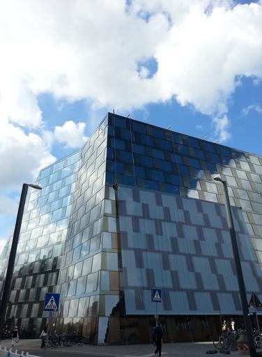 Keywords: glass facade architecture mirroring clouds university library freiburg window forcing house