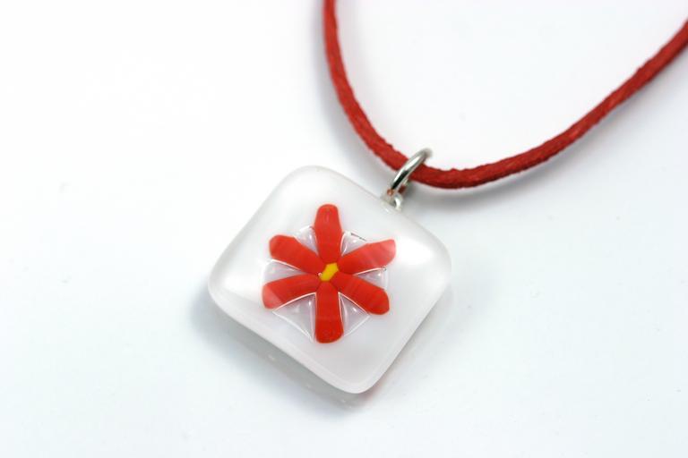 Keywords: glass fused glass jewellery jewelry fashion accessories colorful flower accessory necklace pendant red white