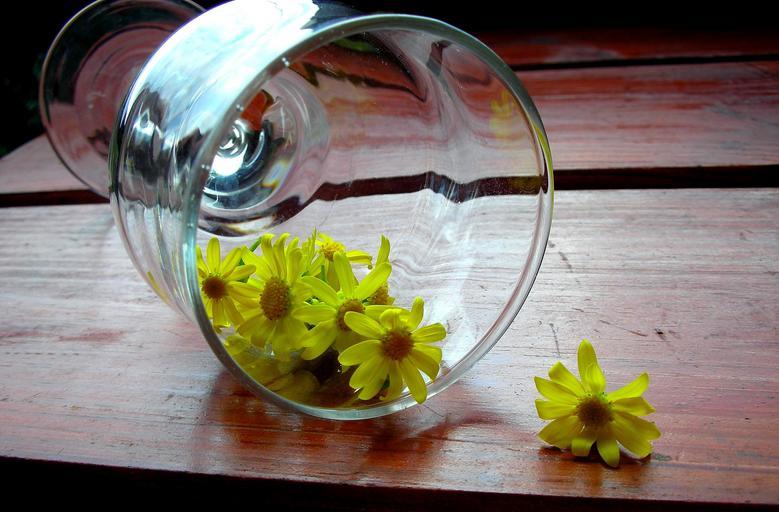 MAKE A MEME View Large Image glass wooden desk chamomile yellow flowers