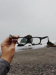 Keywords: glasses beach rain weather hand grey rock water ocean waves sea eye glasses wet hands sand rocks stones shore