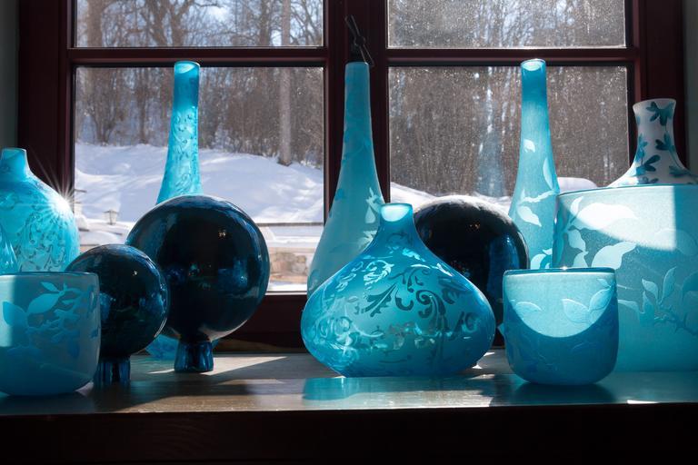 Keywords: glasses blue decoration reflection window glass vases glaskugeln light transparent blautöne