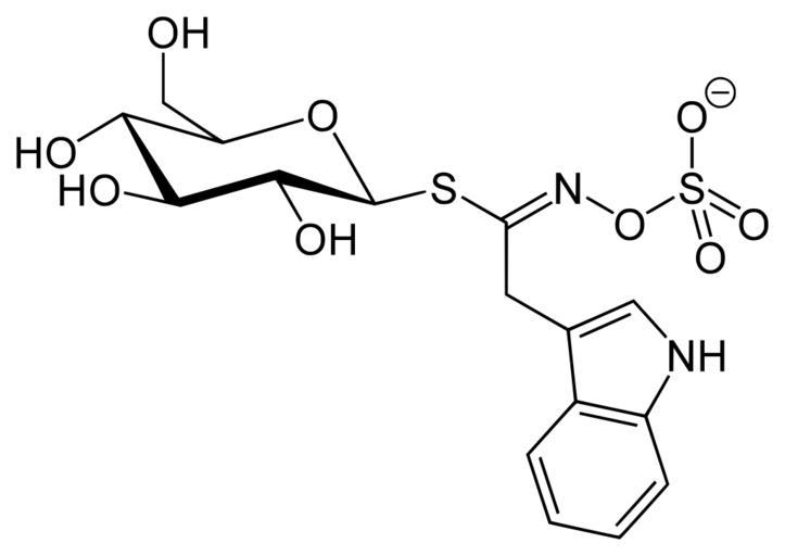 Keywords: Glucobrassicin.svg Glucobrassicin; 3-IMG; 3-Indolylmethylglucosinolate Own 04 05 08 Yikrazuul Glucosinolates