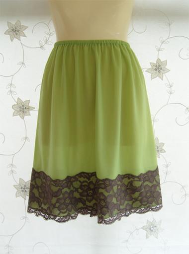 Keywords: Alas no longer in production, Glydons of Hollywood was arguably the first lingerie manufacturer in America to make slips that were sexy, rather than just functional. Now, any item made by Glydons commands attention from serious collectors worldwide. Recently sold to an overseas buyer, here we focus on an exquisite lime and chocolate 1950′s vintage half slip by Glydons. It has a double layer of the finest nylon and a 5-inch deep lace hem. The attention to detail and quality of manufacture is clear to see in the photographs, however the true joy is in the wearing. So elegant!