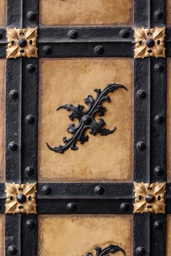 Keywords: goal door wood metal brass old access antique input metal bezel gilded painted rivet wrought iron ornament middle ages
