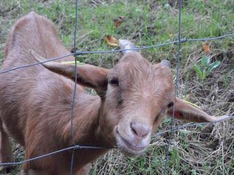 Keywords: goat fence cheeky farm friendly trustful kid animal pasture