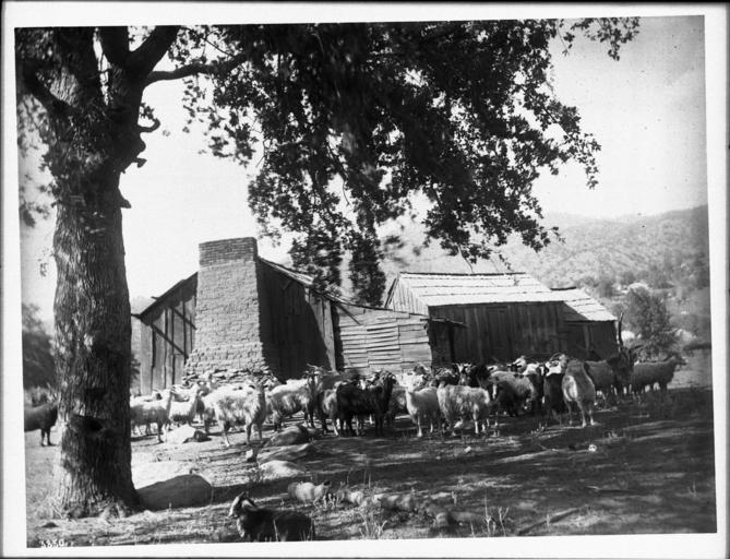 | Keywords: Goat herd owned by Tule River Indians, Tule River Indian Reservation, near Porterville, ca.1900 (CHS-3850).jpg en <br> Goat herd owned by Tule River Indians Tule River Indian Reservation near Porterville ca 1900 Photograph of a goat herd owned by Tule River Indians Tule River Indian Reservation near Porterville ca 1900 Dozens of goats stand under a large tree near two or three wooden and adobe ranch buildings Scrub grass grows in the foreground Mountain slopes dotted with brush rise in the background Call number CHS-3850 Legacy record ID chs-m10203; USC-1-1-1-10346 Photographer James George Wharton Filename CHS-3850 Coverage date circa 1900 Part of collection California Historical Society Collection 1860-1960 Type images Geographic subject city or populated place Tule River Indian Reservation; Porterville Repository name USC Libraries Special Collections Accession number 3850 Microfiche number 1-185- Archival file chs_Volume76/CHS-3850 tiff Part of subcollection Title Insurance and Trust and C C Pierce Photography Collection 1860-1960 Repository address Doheny Memorial Library Los Angeles CA 90089-0189 Geographic subject country USA Format aacr2 2 photographs glass photonegative photoprint b w ; 17 x 22 cm Rights Digitally reproduced by the USC Digital Library; From the California Historical Society Collection at the University of Southern California Subject adlf tribal areas Project USC Repository email specol usc edu Contributing entity California Historical Society Date created circa 1900 Publisher of the digital version University of Southern California Libraries Format aat photographic prints; photographs Geographic subject state California Subject file heading Indians -- Yokut Format glass plate negatives Access conditions Send requests to address or e-mail given Phone 213 821-2366; fax 213 740-2343 Geographic subject county Tulare Subject lcsh Yokuts Indians; Goats; Indians of North America -- Reservations Subject Tule River Indian Reservation circa 1900 date created James George Wharton http //digitallibrary usc edu/cdm/ref/collection/p15799coll65/id/11411 PD-old-70-1923 Images from USC Digital Library uploaded by Fæ Indigenous peoples of North America California Historical Society Collection 1860-1960 Glass plate negatives Photographs by George Wharton James Porterville California |