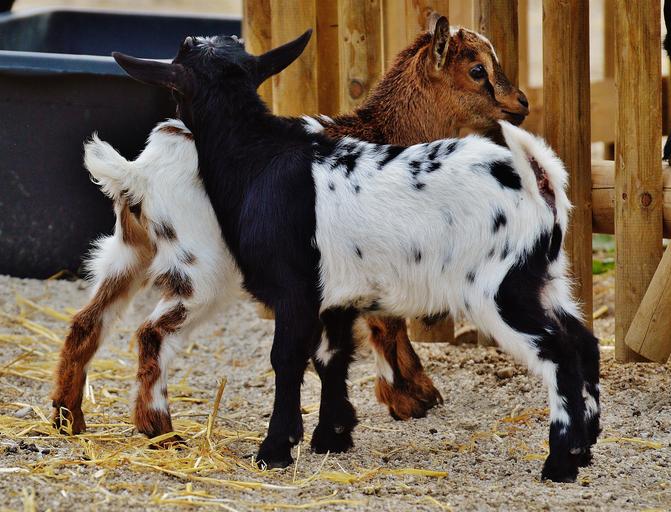 Keywords: goats wildpark poing young animals playful romp cute small young fur quadruped