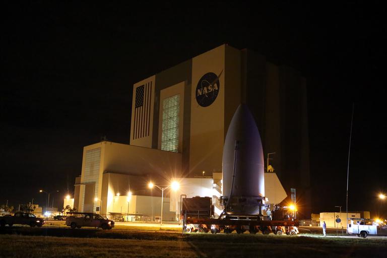 | Keywords: goes-r goesr astrotech vif pad 41 pad41 noaa ula atlas v atlasv centaur upper stage centaurupperstage nasa nesdis noaa satellites noaasatellites noaa satellite and information service noaasatelliteandinformationservice ksc countdowntolaunch roadtolaunch space segment spacesegment launch vehicle launchvehicle spacecraft next generation nextgeneration weather satellite weathersatellite satellite bestof hall night architecture building Enclosed in its payload fairing, NOAA's Geostationary Operational Environmental Satellite (GOES-R) passes by the Vehicle Assembly Building at NASA's Kennedy Space Center in Florida on its way to the Vertical Integration Facility at Space Launch Complex 41 at Cape Canaveral Air Force Station. The fairing-encapsulated GOES-R spacecraft was mated with the launch vehicle on November 9, 2016. GOES-R is scheduled to launch aboard the Atlas V rocket on November 19. Photo credit: NASA/Ben Smegelsky For the latest on the GOES-R launch, visit www.nesdis.noaa.gov/GOES-R-Launch Enclosed in its payload fairing, NOAA's Geostationary Operational Environmental Satellite (GOES-R) passes by the Vehicle Assembly Building at NASA's Kennedy Space Center in Florida on its way to the Vertical Integration Facility at Space Launch Complex 41 at Cape Canaveral Air Force Station. The fairing-encapsulated GOES-R spacecraft was mated with the launch vehicle on November 9, 2016. GOES-R is scheduled to launch aboard the Atlas V rocket on November 19. Photo credit: NASA/Ben Smegelsky For the latest on the GOES-R launch, visit www.nesdis.noaa.gov/GOES-R-Launch |