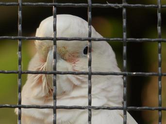 Keywords: goffins cockatoo cacatua goffiniana cockatoo imprisoned grid zoo bird parrot scream talk