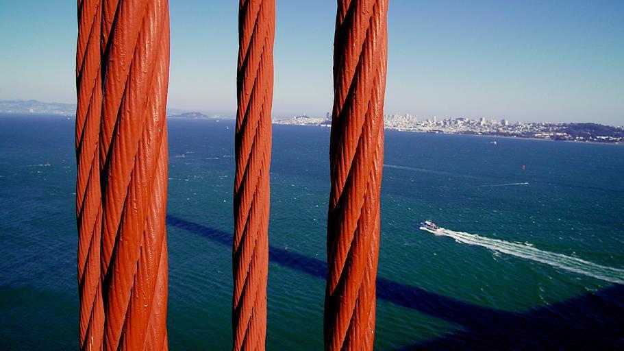 Keywords: golden gate bridge cable boat san francisco bay skyline bridge gate golden california bay francisco san landmark water ocean sea travel city red suspension structure pacific famous tourism vacation attraction america monument historical