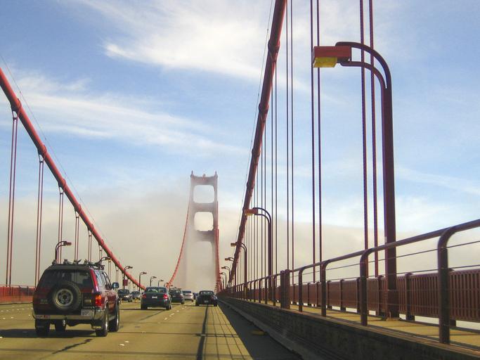 Keywords: golden gate golden gate bridge tourism monument building san francisco california usa tourist attraction beautiful traffic connection traffic road downtown city street vehicles