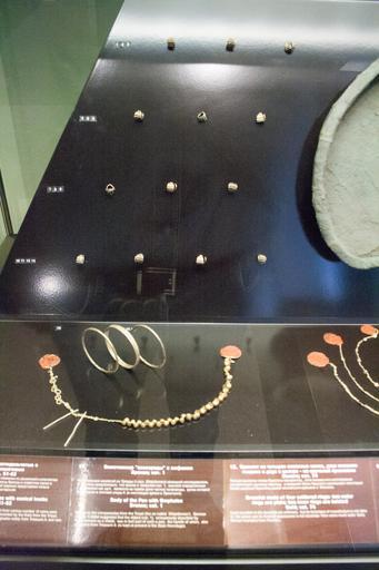 Keywords: Golden jewelry from Troya.jpg Artwork gold Institution Pushkin Museum object history Discovered by Schliemann in Troy credit line accession number own photo by Szilas in the Pushkin Museum Moscow PD-old-100 Treasures from Troy in the Pushkin Museum Priam's treasure