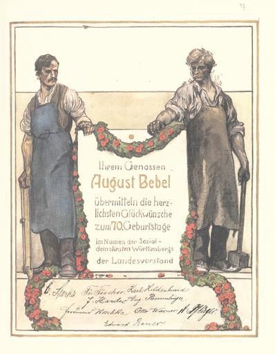 | Keywords: Goldenes Buch zum 70. Geburtstag August Bebel 1910 Seite 037.jpg Goldenes Buch zum 70 Geburtstag August Bebel 1910 Seite_ jpg 036 038 Glückwunschschreiben zum 70 Geburtstag von August Bebel SPD-Landesvorstand Württemberg August Bebel zum siebzigsten Geburtstag 22 Februar 1910 / mit einer Nachbemerkung von Ursula Herrmann Reprint des Unikats aus dem Zentralen Parteiarchiv der SED Dietz Verlag Berlin 1989 Lizenzausgabe Saur 1989 ISBN 3-598-07256-2 self scanned from own book 1910 Diverse Goldenes Buch zum 70 Geburtstag August Bebel 1910 PD-old-70-1923 |