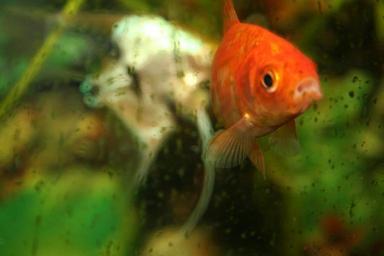 Keywords: Goldfish2.JPG Gold fish on fish tank Own 05/02/2008 myself public domain Carassius auratus