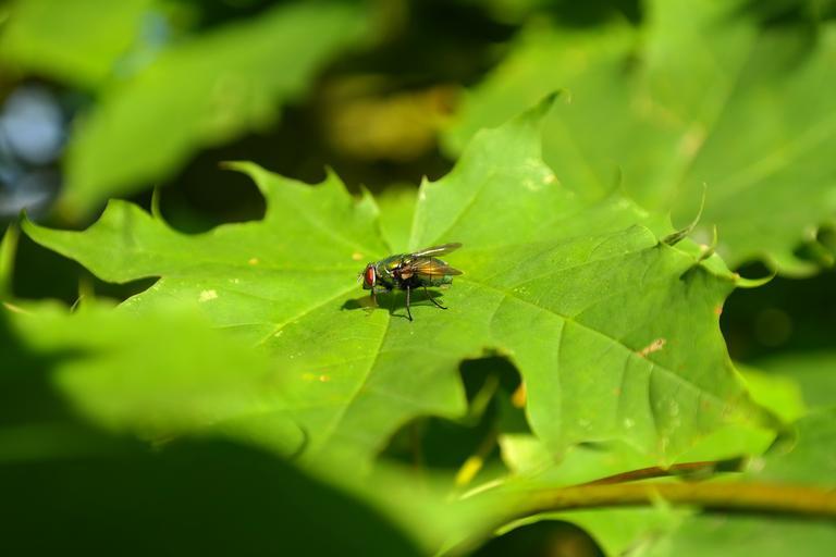Keywords: goldfliege fly insect leaves tree maple lucilia sericata bluebottle calliphoridae lucilia leaf green maple leaf silver maple acer saccharinum acer
