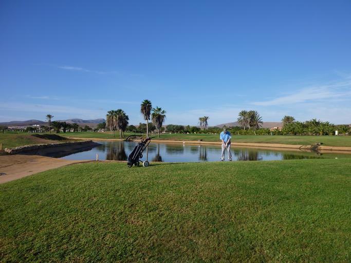 Keywords: golf fuerteventura holiday golfing holiday summer green leisure sport grass lifestyle activity course vacation playing outdoors sky people player golfer recreation landscape