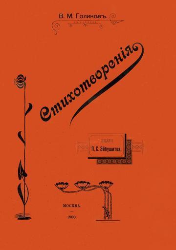 Keywords: Golikov-Stihotvoreniya-1900 (cover).jpg Cover of Стихотво ения Poems by V M Golikov own scan from В Голиков Стихотво ения осква Издание П С Эйбушитца Типо-Литог афия то г дома А С Клименков и К° А бат дом Платонова 1900 1900 Author PD-old Vladimir Mitrofanovich Golikov |