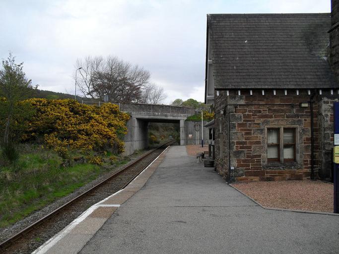 Keywords: 57 58N 3 59W Golspie railway station is a railway station serving the village of Golspie in the Highland council area of Scotland. 28 July 1874 Opened. Attribution: Peter Moore