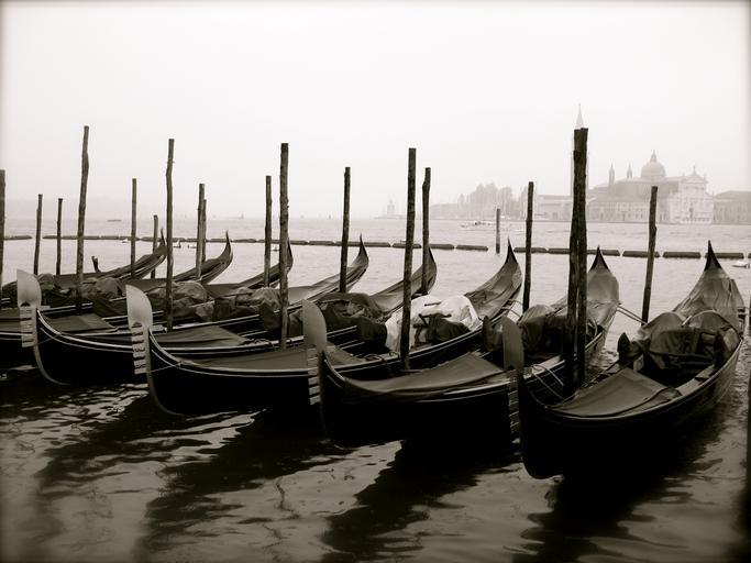 Keywords: gondola venice italy water canal architecture reflection boats famous black and white ripples vacation europe