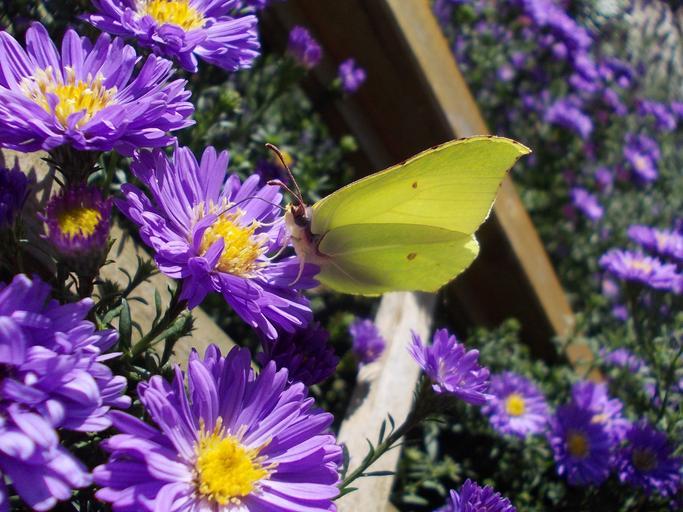 Keywords: gonepteryx rhamni asters insect butterfly white ling garden herbstaster close yellow