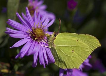 Keywords: gonepteryx rhamni butterfly autumn yellow green asters insect herbstaster garden