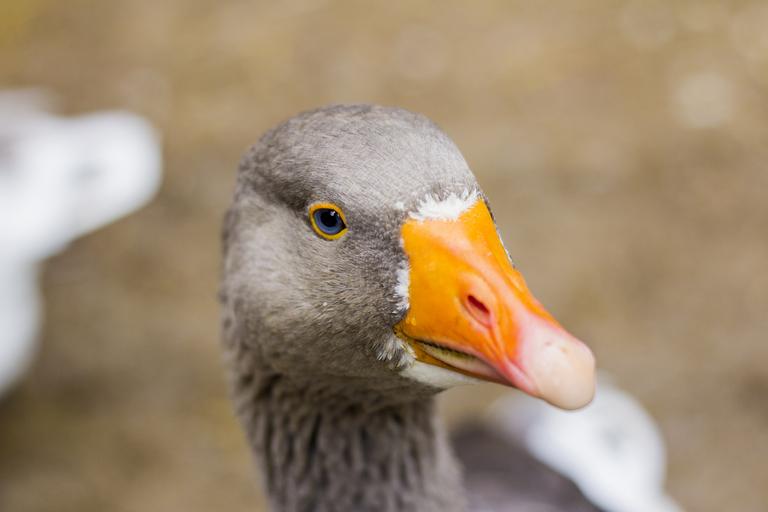 Keywords: goose domestic goose grey bird bill eye portrait close black eye beautiful orange animal head