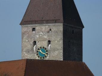 Keywords: goose tower tower ulm pink square building architecture stone clock clock tower time of roof brick