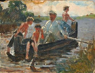 Keywords: Gorelov Lenin and boy.jpg en Lenin and boys sketch Gorelov G N ru Ка тина Ленин и мальчики эскизная абота авто Го елов Гав иил икитич А хив Го елова Ю внука Го елова Гав иила икитича Го елов Гав иил икитич 1930е Позволяю Го елов аксим внук Го елова Г Ка тина была написана по заказу узея Революции Союза ССР и является эскизом к ка тине По г ибы на д угой бе ег Ка тон масло 47 5х65 Пов еждения ка тона Работа п оисходит из семьи художника Подтве ждение подлинности внуком художника на обо оте Ка тина оценена экспе тами антиква ного дома Гелос после чего выставлялась на Объединенный Антиква ный Аукцион 20 ма та 2009 года в азделе Живопись см сайт Аукционного дома Гелос PD-Art Boys in art Vladimir Lenin in art Boats in art Paintings of people sitting in boats Gavriil Gorelov Four males in art